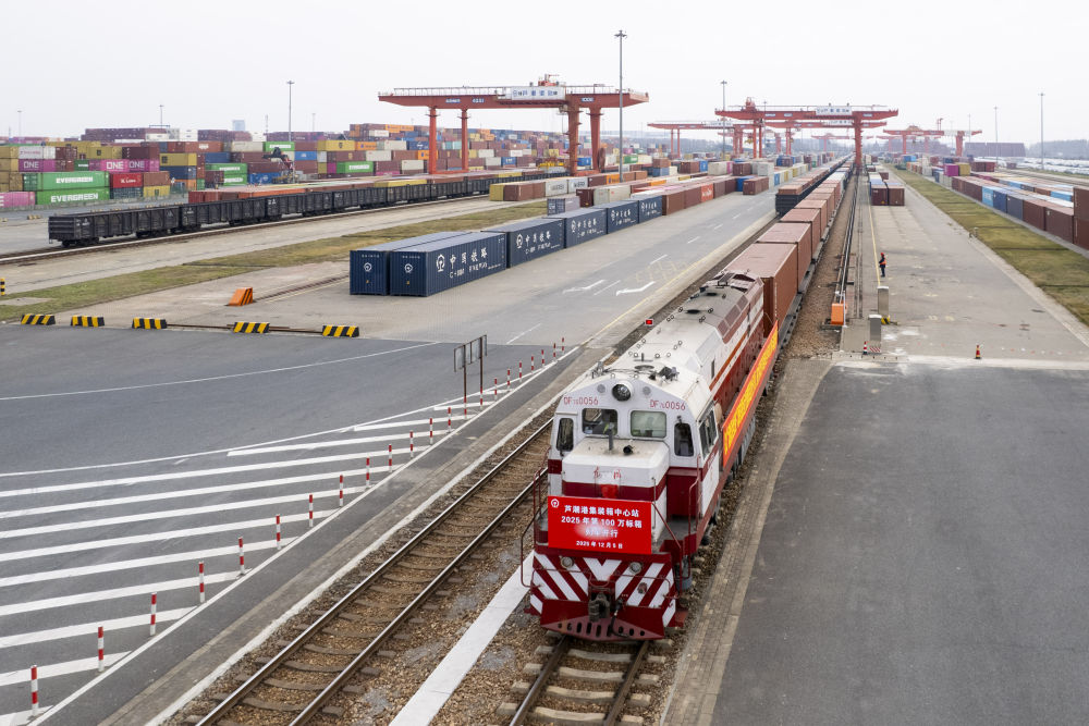 2025年12月5日拍摄的上海铁芦潮港集拆箱核心坐(无人机照片)。进一步做强国内大轮回。面临不确定难意料要素增加,中国经济顶压前行、向新向优成长,本年估计达到140万亿元摆布。加速放宽办事消费的,日前召开的地方经济工做会议上,记者 陈浩明 摄