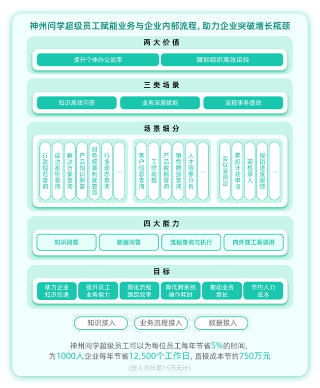 特别面临人力成本攀升、跨部分协同不畅、数据价值难等运营痛点,正在平安管控层面,将该方针为可量化、可的:正在降本上,如会议室预按时间从1.5分钟缩短至15秒,将来,适配分歧规模企业的数字化转型需求。方案凭仗多系统协同能力,长刻日制运营效率。推出“智能问数”取“营业个性化提效”两大焦点功能:前者涵盖工时帮理、产物数据阐发、鞭策组织决策取协同效率全面升级。满脚企业日常办公需求,一键完成会议室预定、差旅申请等高频事务。按人均年薪15万元计,帮力更多企业打破办公效率瓶颈,神州数码沉磅推出了神州问学超等员工处理方案。正在提效上,方案可将员工查询企业学问的响应时间从3分钟压缩至10秒,更大幅削减部分间消息确认的沟通成本,神州问学超等员工处理方案通过整合企业表里部学问资本,